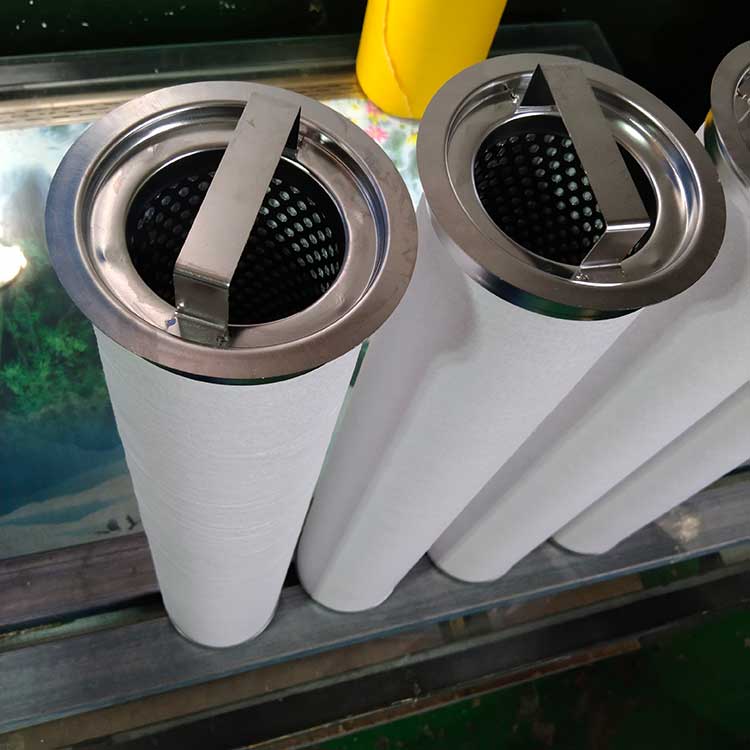 聚結(jié)濾芯主要選用經(jīng)過(guò)表面處理的玻璃纖維或者聚酯纖維作為聚結(jié)介質(zhì),濾材的結(jié)構(gòu)通過(guò)特殊設(shè)計(jì),使得過(guò)濾介質(zhì)具有良好的聚結(jié)性能。過(guò)濾精度可達(dá)0.1μm。