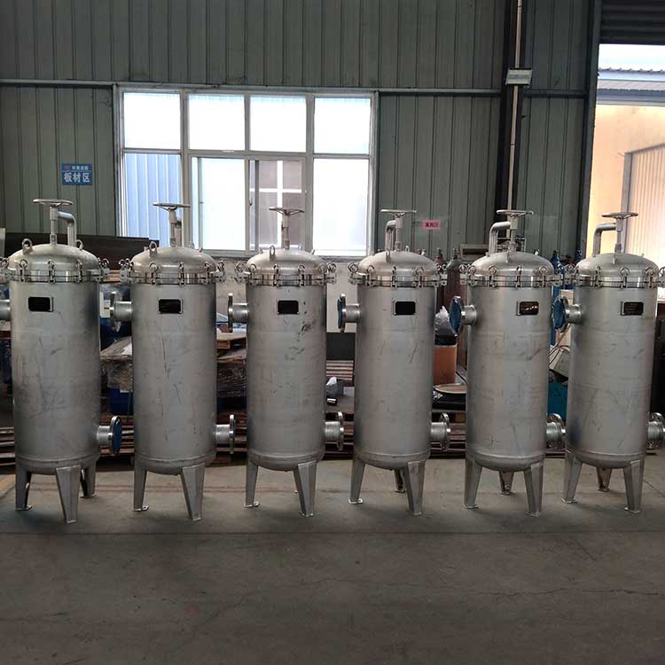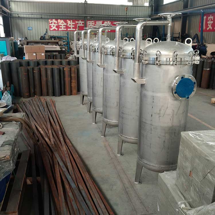 袋式過(guò)濾機(jī)是一種壓力式過(guò)濾裝置,主要有過(guò)濾筒體、過(guò)濾筒蓋和快開(kāi)機(jī)構(gòu)、不銹鋼濾袋加強(qiáng)網(wǎng)等主要部件組成,濾液由過(guò)濾機(jī)外殼的旁側(cè)入口管流入濾袋,濾袋本身是裝置在加強(qiáng)網(wǎng)籃內(nèi),液體滲透