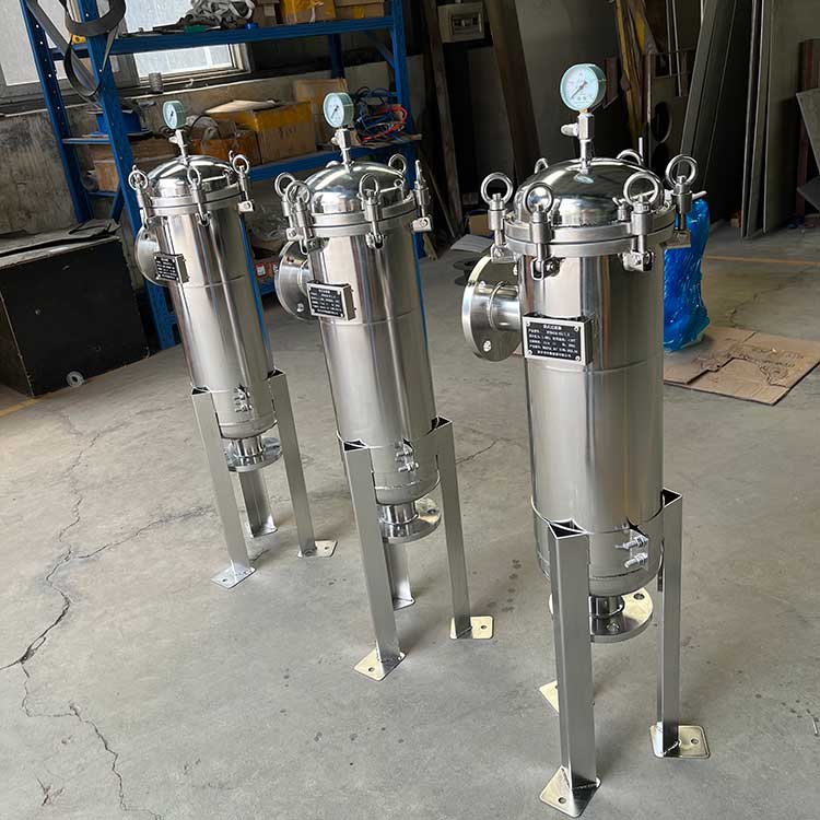 袋式過濾器一種結構新穎、體積小、操作簡便靈活、節能、高效、密閉工作、適用性強的多用途過濾設備。袋式過濾器是一種新型的過濾系統。袋式過濾器內部由金屬網籃支撐濾袋,液體由入口流進,經濾袋過濾后從出口流出,雜質攔截在濾袋中,更換濾袋后可繼續使用。